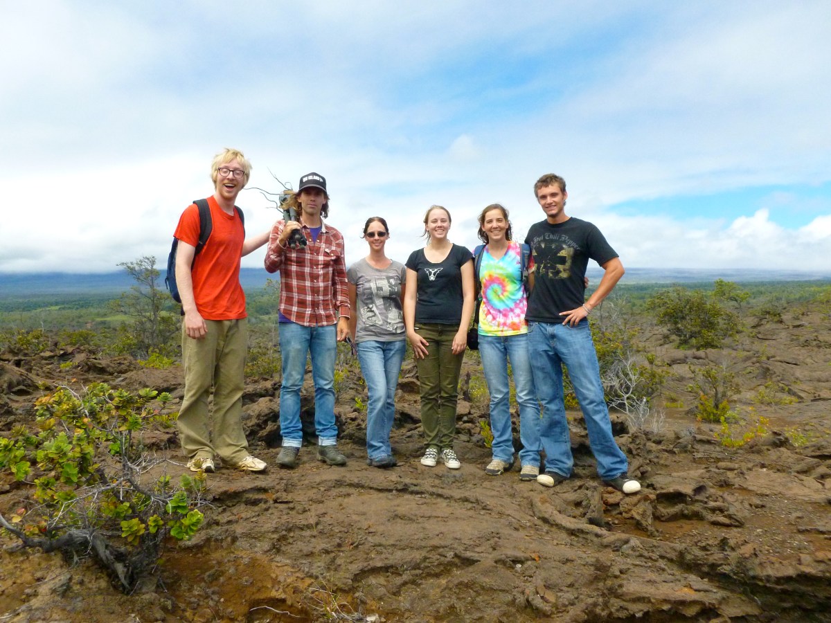 A group of students from my 101L class, on a field trip to Big Island, HI (I’m in my typical field tie-dye). They had a great time exploring old pāhoehoe flows, lava tubes, seeing the glow from Kīlauea’s summit lava lake, and visiting petroglyphs carved by early Hawaiians.